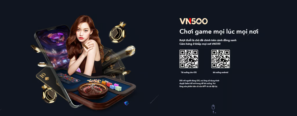 Trải nghiệm VN500 nhanh hơn, mượt hơn ngay trên thiết bị di động! Tải ngay ứng dụng VN500 để tận hưởng trò chơi đỉnh cao mọi lúc, mọi nơi.